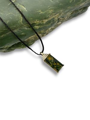 New Zealand Pounamu (Jade) 18K White Gold Pendant with diamonds